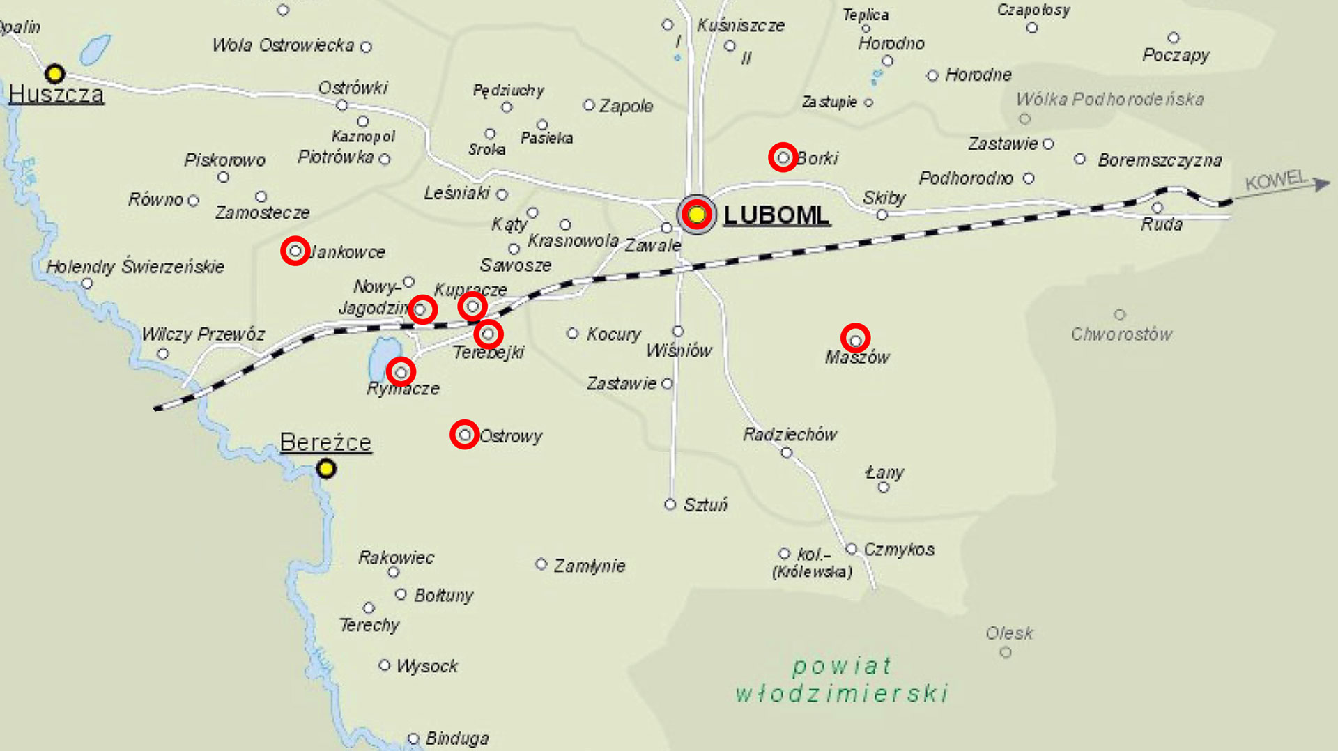 Mapy poniżej prezentują miejsca pobytu i pracy sióstr Terezjanek na terytorium II Rzeczypospolitej, które obejmowało fragmenty dzisiejszej Polski, Litwy, Białorusi i Ukrainy. W okresie przedwojennym siostry Terezjanki były najbardziej aktywne w powiatach Luboml i Krzemieniec. W Maszowie, Lubomlu, Jagodzinie i Załużu mieściły się domy zakonne. W pozostałych miejscowościach siostry pracowały lub przebywały czasowo.